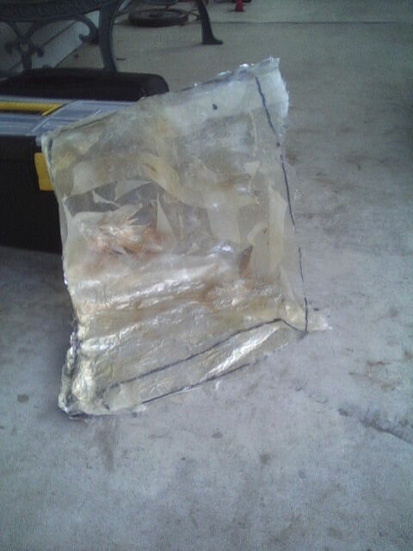 here are some pics of the 1st layer. I pulled the mold out and i'm going to put down some more layers tomorrow. looks good so far, 1st layer is brittle but strong. What do guys think about putting the first half layers of FBG mat and the last half layers of FBG mat?