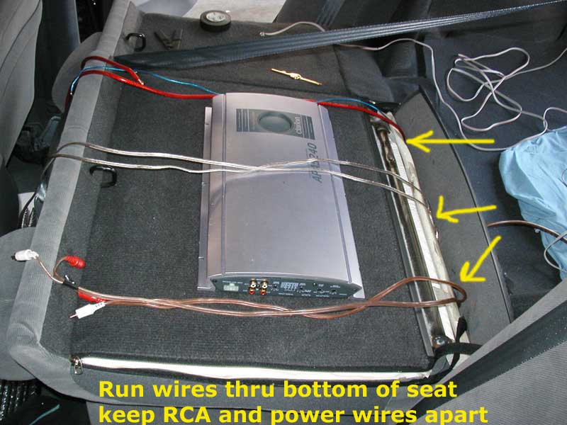 Your setup doesn't look too bad with the wires hanging out like that, but it would look cleaner if your wires ran through the seats.