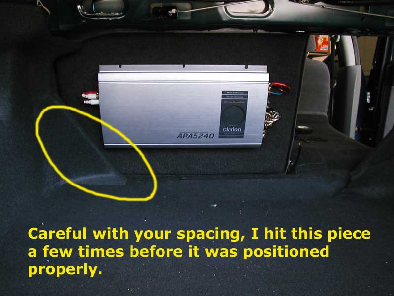I secured with 4 screws and 7 zip-ties. As for hiding the wiring I dont need to do that yet since I havent seen my amp in like 2 months. so I dont care if the wires are out like that.