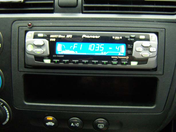 Sorry, it's not the best pic of it, but the best one in my gallery of it. It's a Kenwood, i dunno he exact model #. I traded my stock ex exhaust system with a member for this. Nothing special, but better looking/sounding than stock.