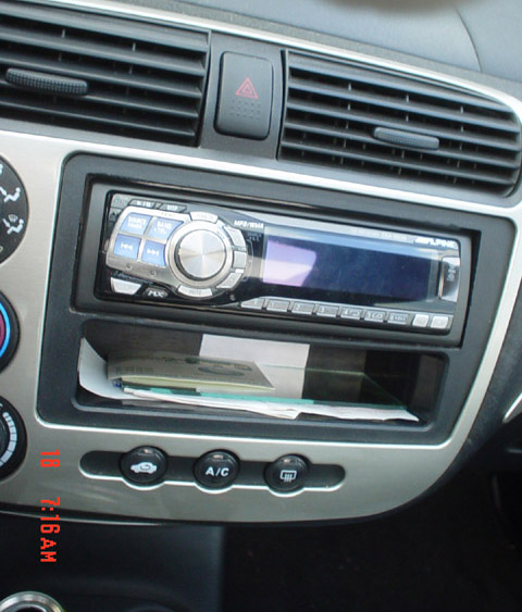 . That said, I saw you mentioned Alpine 9835 as to having problems - that's not true at all. Alpine had enormous success with the 9833 and 9835 this past year as far as quality control goes. However, the newer vers of the two decks, the 9853/55, they have had some preliminary issues. Although the Glide touch technology seems pretty cool, wait til they iron out the bugs from these things. I think your best choice is to scoop last years 9833. Same deck as the 9835 only without Biolite display. The biolite is a contrast setting which dramatically cuts down on glare. Personally, I think it cuts down on looks too becuas I dont' like the gray colored display. The 9833 had 512 color combinations you can set and user setting 12 - I beleive- Identically matches the red/amber color of the new civic gauges. The deck is phenominal. SQ, features, ease of use, etc. If you are looking for a simpler deck without all the bells and whistles, that will look mostly stock, look at Nakamichi decks too.
