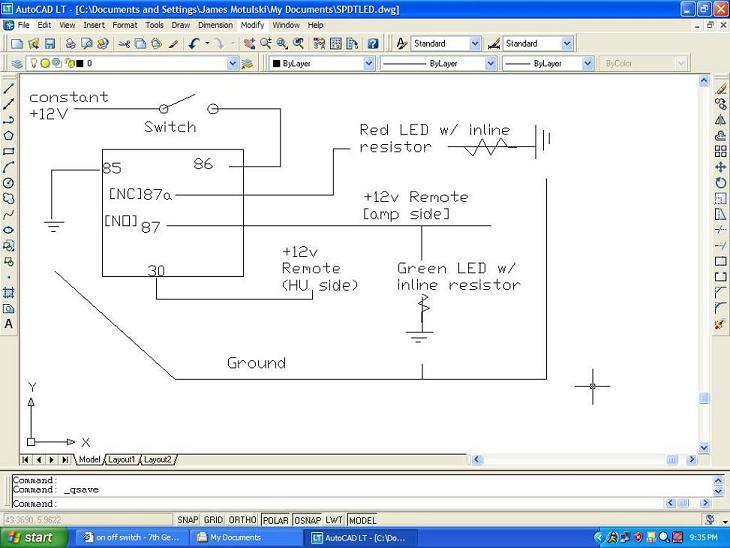i need help wiring an on/off switch for my amp i want to use my 12v constant but i have a green light and a red light i want the green light to be on when my amps on and the red for when its off please help thanks
