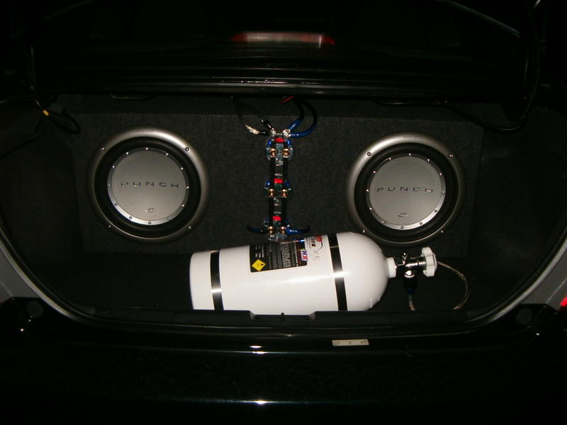 alright, first time posting my system yet, i just finished with it a few weeks ago, did everything myself, took a good while, still have to kinda hide some more wires and **** as u can see in the pic of the sub... but here it is