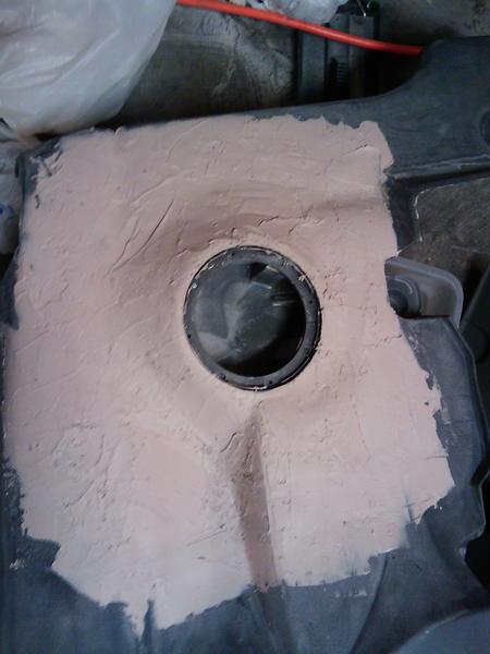 lmao I realized it after I typed it but it should be all alpine soon with the exception of power management and the subs. I have some pictures of the custom fiberglassing we are doing so here they are. Even though the one looks done we still have a lot of work to do yet. We Need to apply some more bonda in two corners and a few wholes that got missed but they should be complete by monday night. They are going to be painted black to give me a start towards my black and blue interior.