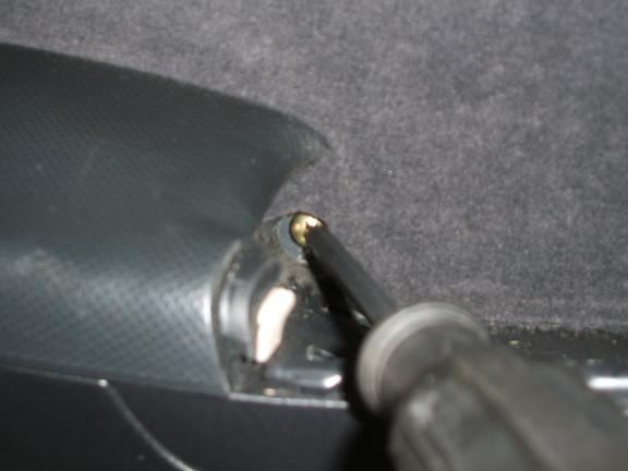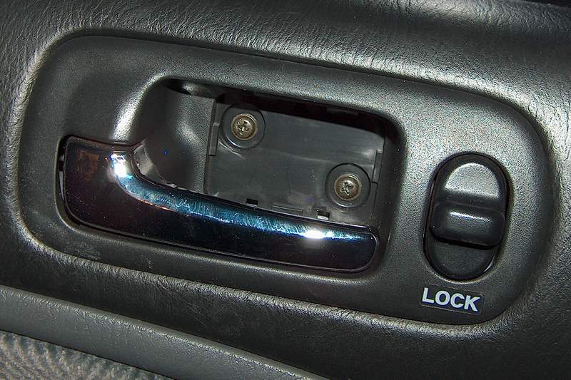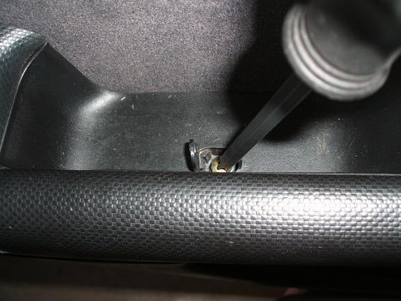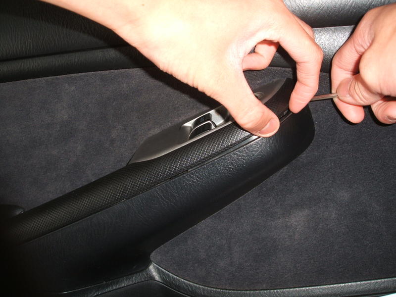 Insert screwdriver as shown and gently pry off the cover for the door handle.