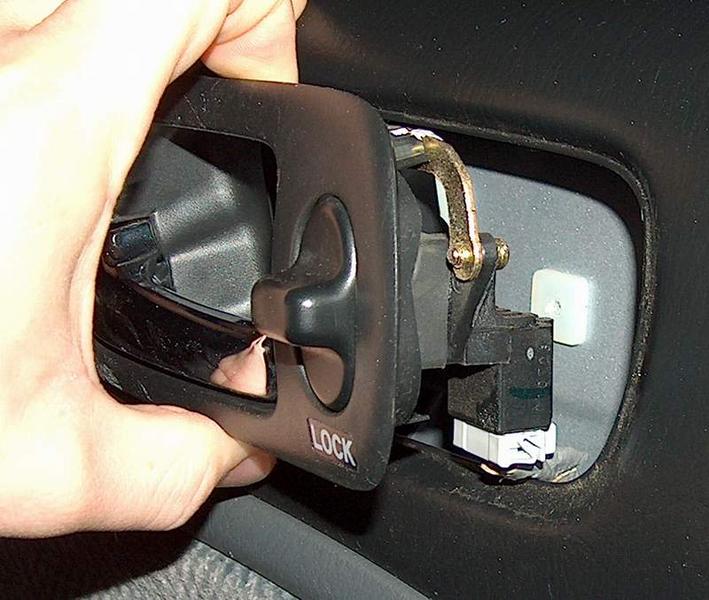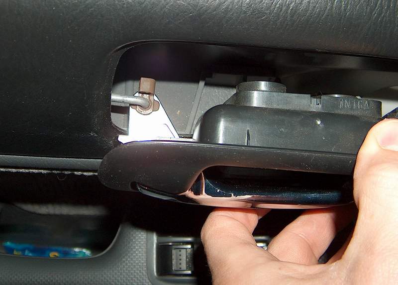 Then stick your hand inside the door handle opening and pull towards you to pop out one of the clips.