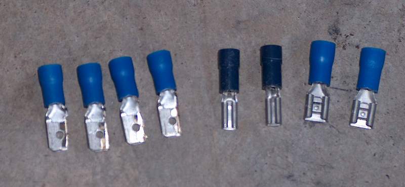 So I didn't have to cut off the factory connector and could reinstall the OEM speakers later if desired, I opted to make my own adapter harness. I only had the larger spade connectors on hand, so I cut them to make them fit. See pic for comparison. If you can get the medium size male's, then you'll be good.