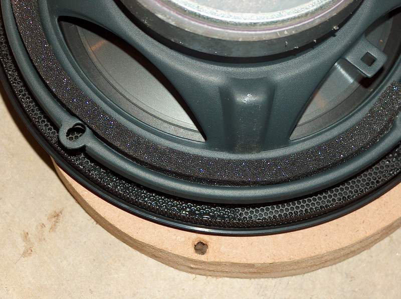 Test fit the spacer on the speaker and ensure it fits. Mark the locations of the 4 mounting holes of the speaker.