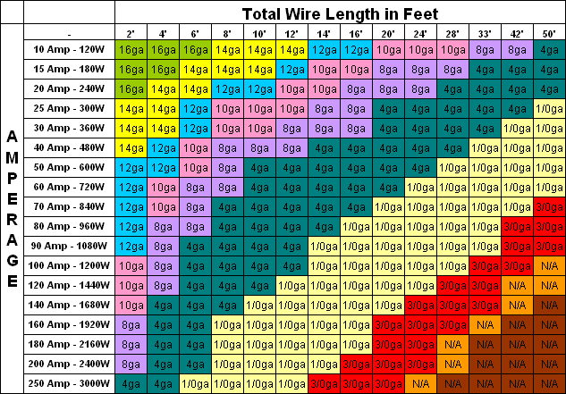 here's a good chart to give you guidance. You'll highly likely be dealing with the first two rows, and I'm guessing you're not going to exceed 10 feet of wire