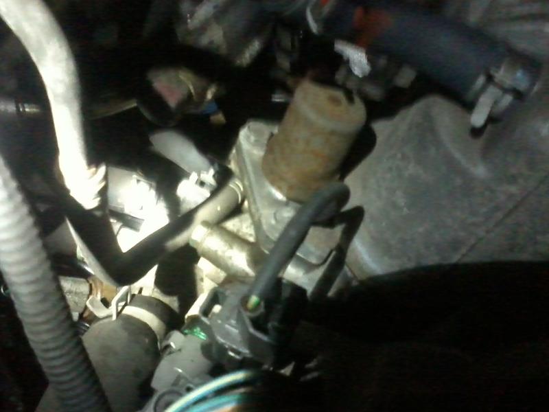 I'm struggling to identify the following component on a '97 1.6 liter Honda Civic engine. The leak has progressed where it is a steady drip where it bolts to the engine but only when the vehicle is running. I can't seem to identify the component in a couple of repair manuals I own. Any help is greatly appreciated. I'll apologize for the photo I attached up front but my cell phone is a Cricket..not the greatest of pixels but I think it should do the trick.