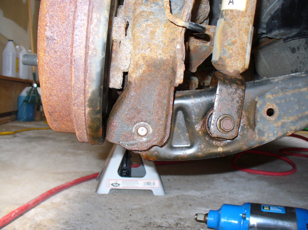 The other bolt, no matter how much I fired that impact wrench, it wouldn't budge. Out came the breaker bar and snapped the head of the bolt. Hmmm. Now I'm trying to get a plan together to deal with the situation. I'm thinking given how the fasteners are in similar condition, I'd rather not remove any of the arms from the car as I might just create more problems.