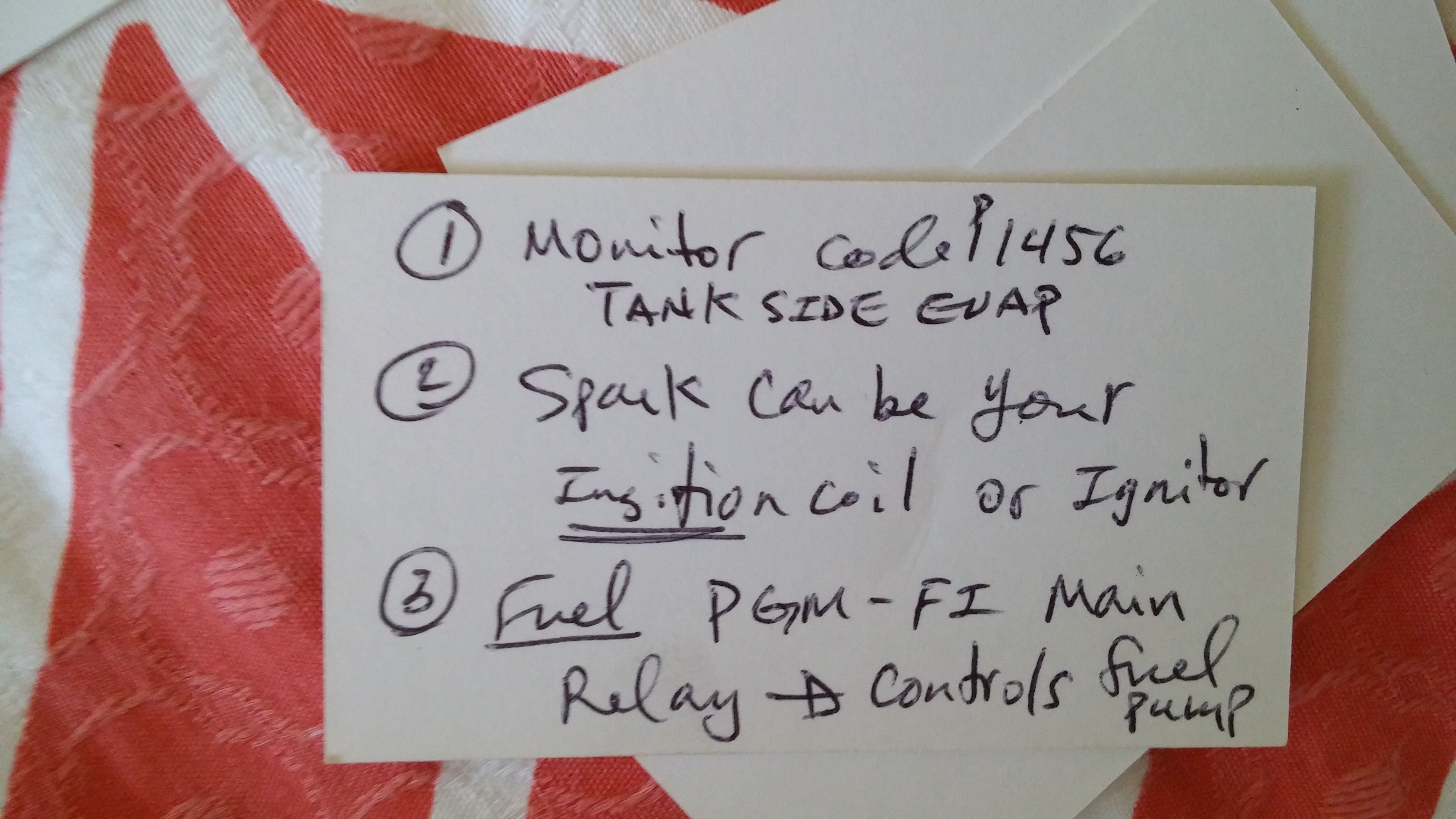 The evaporative code that was showing that the #2 mechanic was diagnosing. now that I look at the hand written note I would say #2 mechanic is diagnosing everything correctly! And I know you want to sell the car, but if that's all that's wrong with it, fixing these things will keep it running. Parts are 20 years old, and they don't last forever. Like I was saying earlier I just went through all this with my 96.