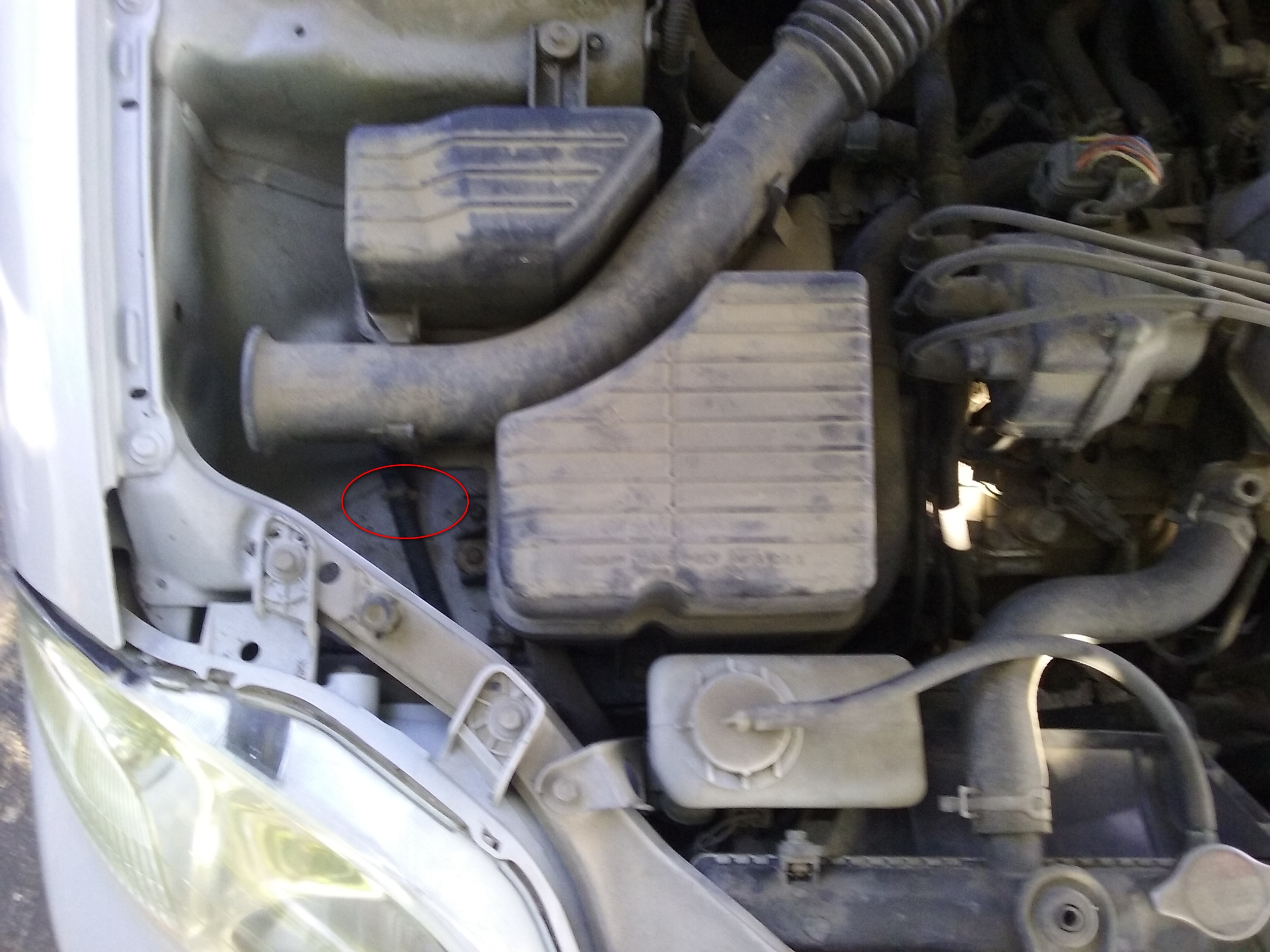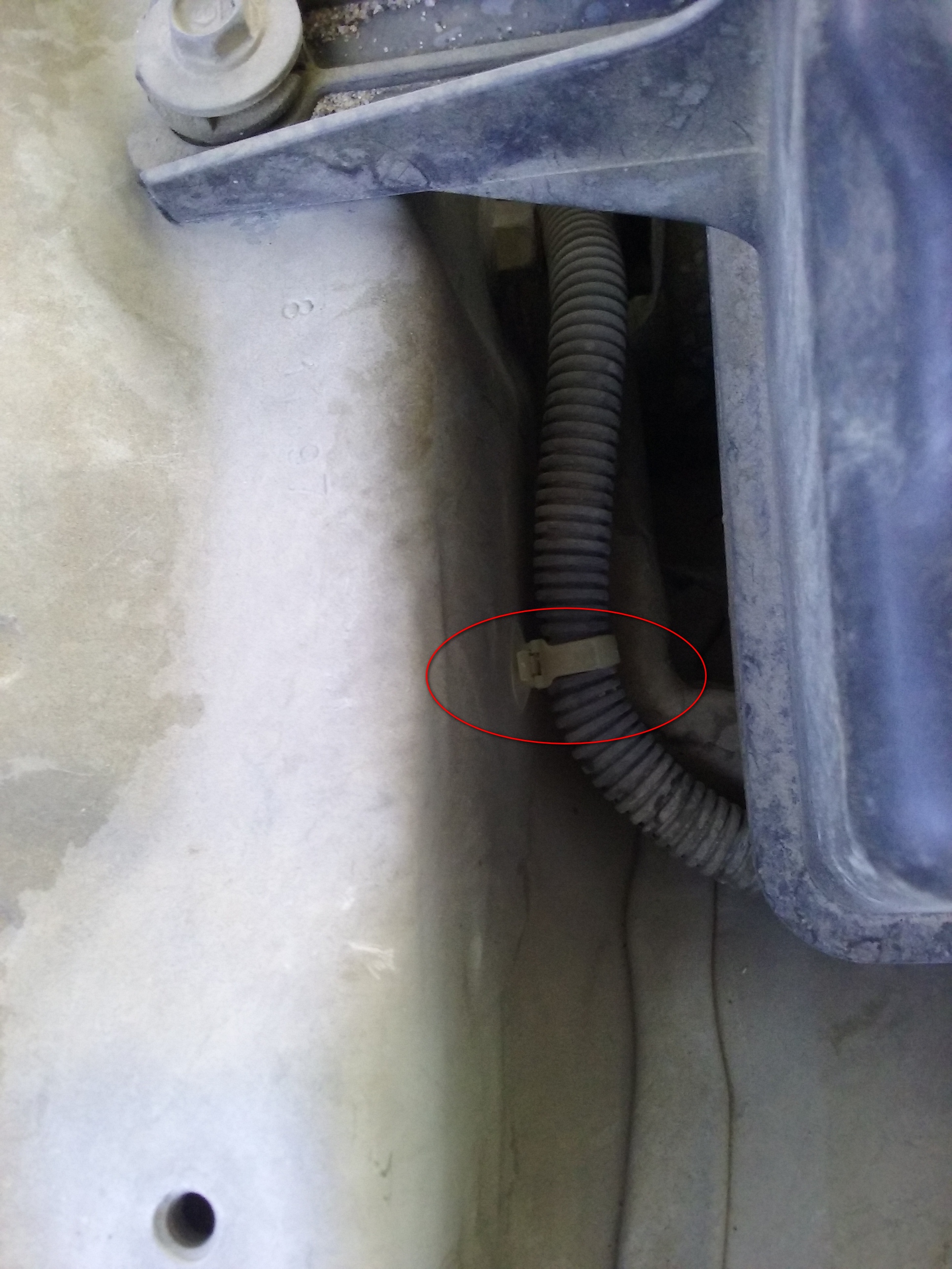 The last couple of days, I have heard a strange new tap-tap-tap sound coming from the engine, that is very intermittent--most of the time I don't hear it at all, then I hear it for 5-10 seconds, then it disappears for a couple of days. I popped the hood and think I found the culprit--a plastic clip that holds a hose has become detached from the base. I have circled in red the clips. The red lines are not wide in the thumbnails, but if you open the pics, you can see the red lines. I forget which one came loose, but there are 3-4 in a series along this one hose, and one of them is loose.
