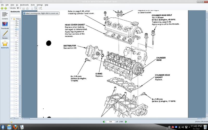 This is a shot of my FSM with the exploded view of the headgasket. Cylinder bolts are torqued to 49 ft-lbs on my D16Y7
