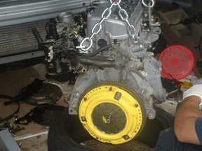 uhm... also ull need 12 point sockets to remove the clutch and flywheel... youll need to get the flywheel resurfaced also to prevent 'chatter' with the new clutch ... i took it to a machine shop (38bucks) and an hour of their time and that was done. when you reinstall the flywheel to the engine you need to use medium grade locktight on all 6 of the bolts. same thing aply's when reinstalling the pressure plate and clutch, locktight on all the bolts. make sure the kit comes with an alignment tool cause thats KEY. u need it. i didnt get one for some reason sooo we had to 'make' our own.. that wasnt to much fun.. but o welll... you need to switch out the pilot/pivot bearing... uhm forget what it is ..lol one of the two..its whatever bearing that is in the center of the flywheel...then u need to switch out the throwout bearing... both are cake to switch..... now the hardest part was installing the tranny back up... cause it slides on the engine with two little poles that guide it snug, that was a pain in the ***.