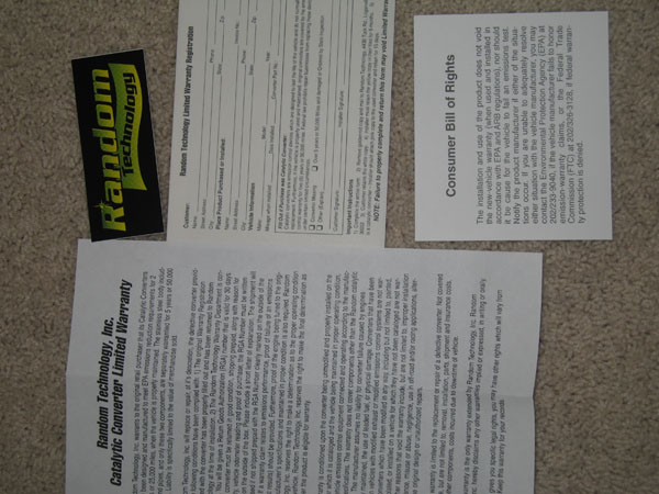 alrite...so today i had the cat installed...then took it to a smog shop...and i passed!!! damn, i haven't been excited like this in a while...i did notice some good backpressure when i pushed on the gas pedal...feels real smooth and like the rest of the peeps who got the random tech cat, mine rattles as well, not often though. my configuration is: