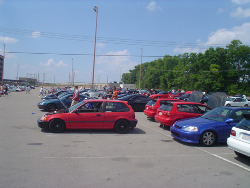 ok so here i was driving down I-65 headed to franklin, when all of the sudden this green civic pulls up to me and was all like "hey" i thought he wanted to race so i was like "i guess" i followed him, he kept signaling for me to follow him, i liked his car, but ne wayz he pulled into 100 OAKS mall..... and drove around back.... so i follow and guess what i see!!!! LOL it was a honda meet.... 150+ cars and people, my jaw dropped.... there were also other cars, subaru, Acura, one Camaro, and a few toyotas but mainly civics and S2000's... did n e one know n e thing about this??
