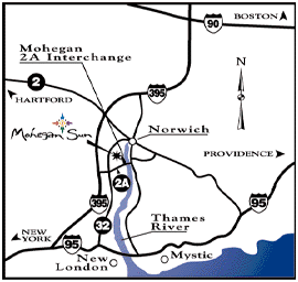 Take I-95 North to Exit 76/I-395 North. Take Exit 79A (Route 2A) East. Less than 1 mile to Mohegan Sun Boulevard.
