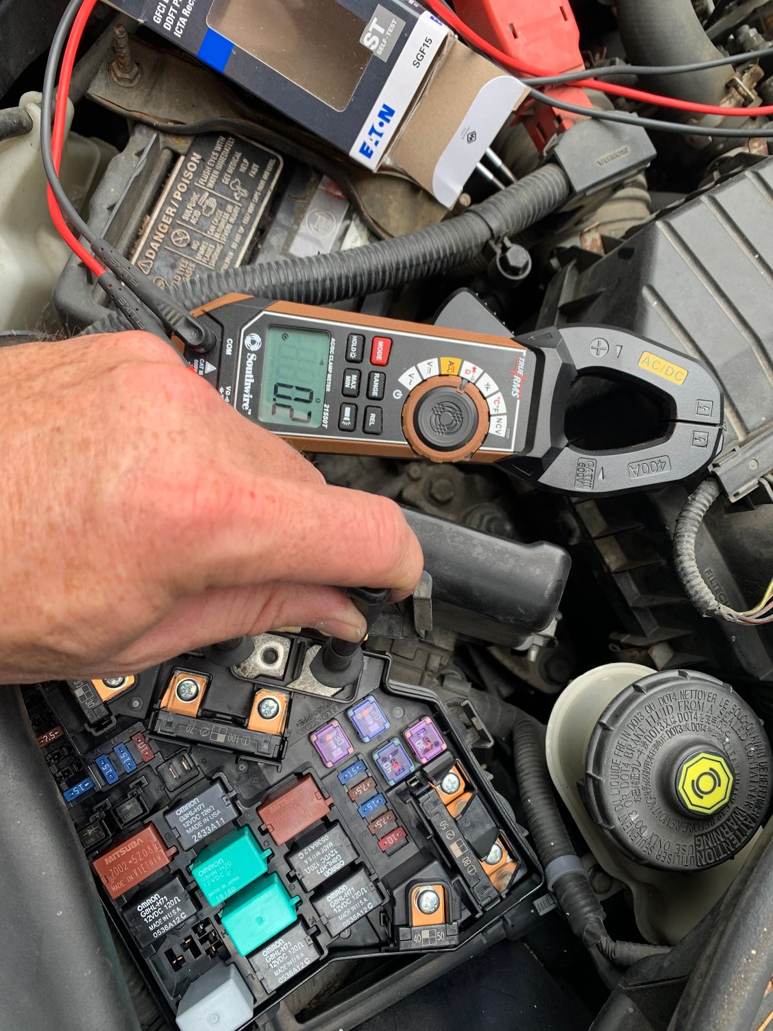 With battery removed, looking at the input of the fuse box terminals, I have 0.2 Ohms