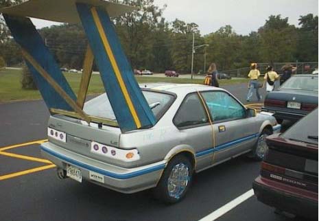 Just one question. WTF? Do people know why some cars, like in GT3, have wings like that? Its to keep their **** on the ground at 200 mph. I know for a fact that the integra could not go 200 mph rolling down a mountain with a tail wind, being pulled by a ferrari.