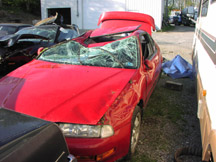 I was driving a little too fast last september in my 01 EX coupe down a windy road after it got done pouring in the rain. Well I found the limit to my car that evening. I learned that even with Koni adjustable struts, ground control coilovers, and strut bars stock firestone tires do not grip good going 65 in a 35 mph curve. As I went into the curve, my back end started to slide. And I made the simplest, stupidest mistake. I over corrected. I went spining off the road and into the woods. I hit 4 trees, a ditch, and one more tree that stopped me. Well I figured the car was totalled. But my insurance decided that the car should be fixed. $9,700 worth of damage I did. I'm just glad though that it was at midnight and no one was on the road when I wrecked my car. And that I was able to walk away with minor cuts and brusies and it messed up my back pretty good too. Even since then I'm affraid to drive fast wen its been raining LOL.