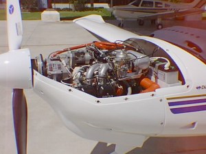 The Rotax engine has several unusual features. It has two carburetors. By splitting the carburetor duties between the two, Rotax was able to use smaller carburetors and find room for them on top of this compact engine. The propeller is driven through a reduction gear box (2.27:1). This is transparent to the pilot who reads propeller RPMs on the tachometer. The engine also features an integral 20 amp alternator directly driven by the crankshaft and a 40-amp alternator driven off the pulley that is mounted to the propeller drive flange. The 20-amp alternator is used exclusively to power the dual capacitance discharge ignition system while the 40 amp alternator powers avionics, instruments and electrical accessories. There is no vacuum system and all the instruments are electrically driven. There is no priming system for this engine, but there is a choke (!) which is used for cold starting only. There is no mixture control, the carburetors are automatically altitude compensated.