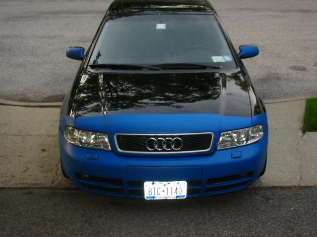 Here you go, Black Audi with that Blue painter tape on it, he did a good job took me a while to relize what he had on it. Good luck with it, i hate bugs and long trips always mess up your front end. Peace!!