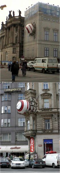 Damn the ball looks unbelievably heavy and must of dropped from the roof as a display for the store. Just looking at that passenger rear wheel bent like that is pretty crazy.