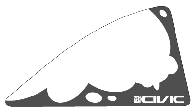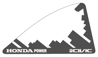 What I did was, I used some translucent marker paper to trace the rear window opening on my Civic coupe, scanned it (in several pieces), and then traced that shape into Adobe Illustrator. I used that shape as a template to create these three designs that should, when cut from outdoor sign vinyl, fit perfectly into the window space.