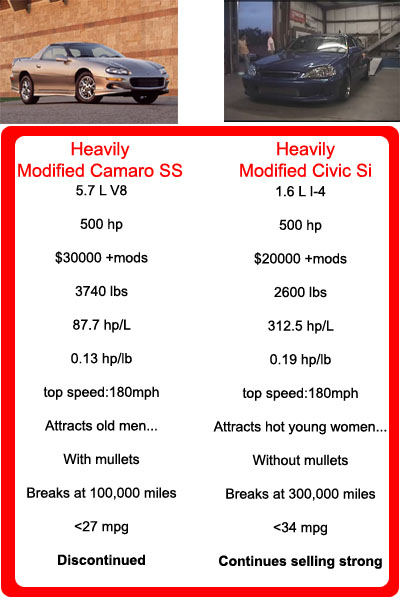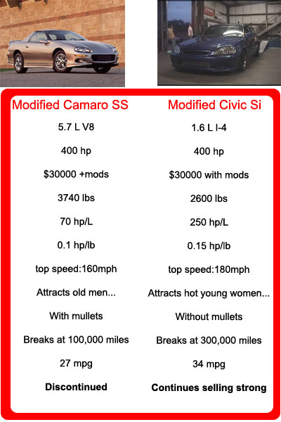 Haha that Civic VS Camaro comparison wasn't fair.