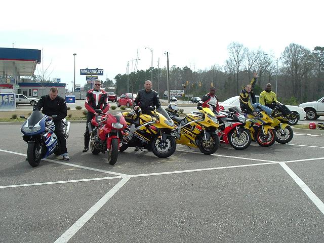 The first is my old GSX-R (yellow) with my friends sv650s (silver) and my girl's gs500f (blue).