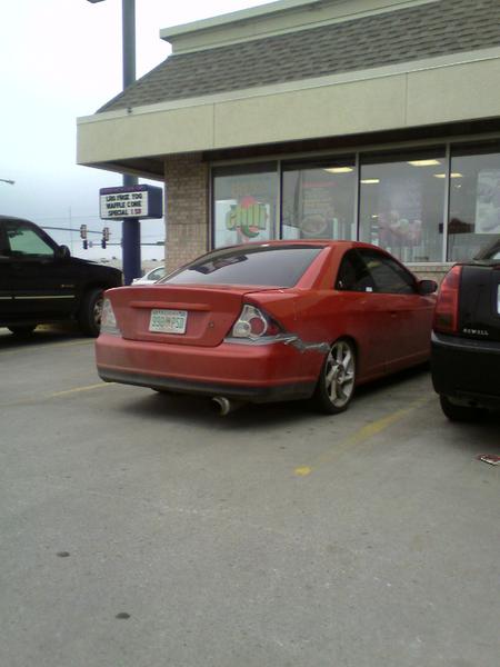 Damn u think he can contact the aliens with that spoiler? O man i gotta get a pic of this one car in my city. Its spraypainted. The guy bought 5 cans of spraypaint and completely painted his car with it LMFAO.