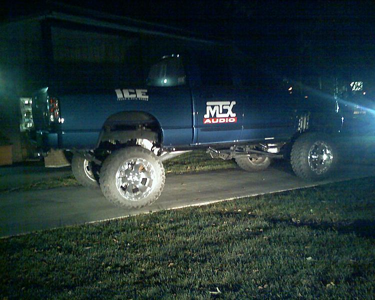 They did draw me in with this badass Dodge (i'm a truck guy at heart but being in college and driving 40 miles a day...yeah, needed a cheap reliable car!). i would guess roughly 18" lift (which is too much for my taste but looked cool nonetheless) 22" rims w/ 40" mudders. It was (obviously) night so I didn't get a chance to look inside but other than monitors and audio I would guess there prolly wasn't much else done to it. On the back (in factory matched emblems) they had, instead of 4X4, 40X4...got a kick out of that. (btw, ICE is the name of the business)