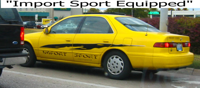 Notice it's a 4-cyl and has the stock HUBCAPS. Basically that's my car... except my car's white and has the following stickers: