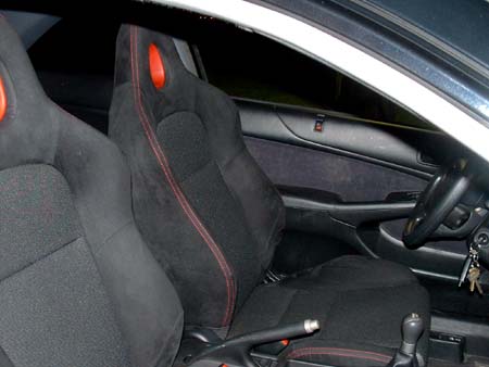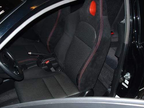Some of you may remember that I was trying to sell some racing seats awhile back...well I sold them and picked up my new seats (the ones I always wanted) and with a little help I was able to put them in, on the weekend. They bolt right in except for one. Its a little bit wobbly but it will be fine after I bolt on an extension piece. There were no problems and all the wiring harness plug right in. I love these seats!!!
