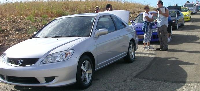 This is it... it's the new 2004 Honda Civic Coupe. This picture was taken during the filming of the new Honda Civic commercial.