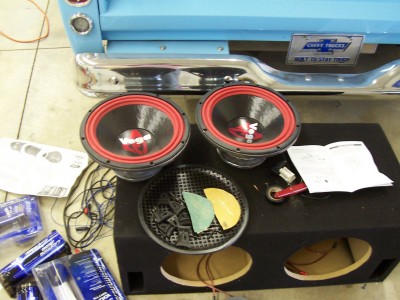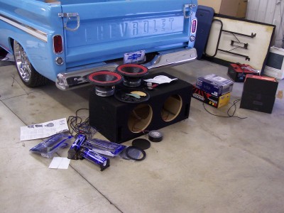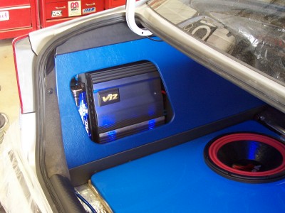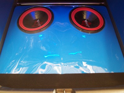 here are some of the box as it will be ported for the subs...then the amp racks, one on each side for the amps and caps will have blue leds inside them...the sides of teh system will be done mainly in blue vinyl but with black at the very top and some grey on the bottom to flow with the interior of my car...