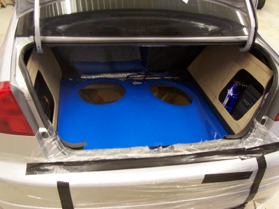 Well, my car has been in the audio shop now for over a week, and today i went in to take some pics and see the progress. These pics are with the pieces just put in for the pics so i could get an idea what the finished product would look like...