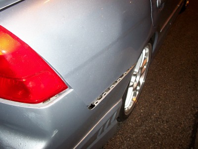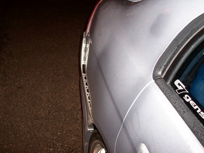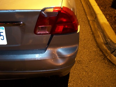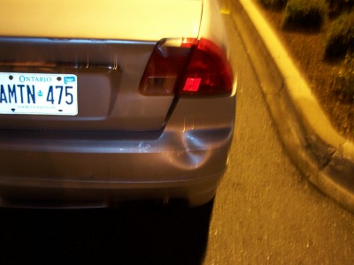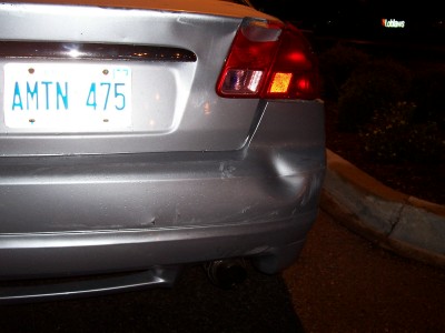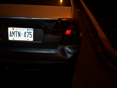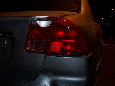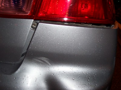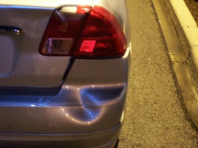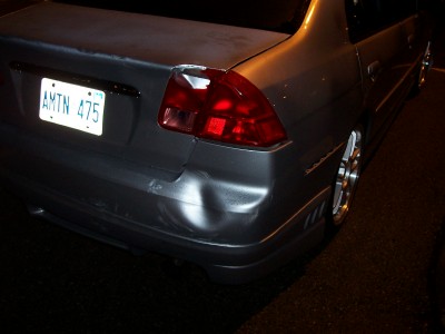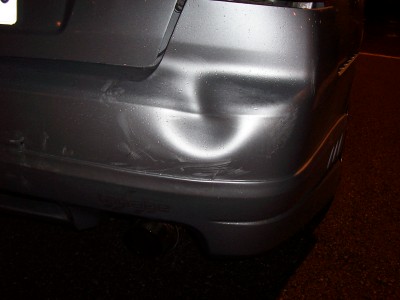 I was heading over to visit my cousin tonite around 9. I was stopped at a light, about 6 or 7 cars back. It's raining mad, when all of a sudden a van comes crashing into my rear!!!! I get out, he asks if i want to call the cops or if i want him to pay me, i told him, "let's go over here to the Timmys". I drive my car up to the left hand turning lane, like 20 feet, i look back, i can't find him. There's lots of cars around, the light is still red, it's raining pretty good, i back up the car to look for him in the traffic, i don't see him. I pull into the TImmy's, wait for like 5 minutes, no show!!! I call the cops, they tell me to go to the Police Reporting station. I managed to get a girl's number and name who saw what happened. I was so freaked out in all the commotion, i didn't get a licence plate, just know it was an old guy with a Chevy Astro van. He left! Hit and Run!!! THat's the second hit and run that's happened to me in the last 3 months!!!! Faawwwwkkk!!!!!!!!!!!!!!!!!!!! Now everything looks like ***, thank god i think my stereo is ok, i can't tell cuz i can't get my trunk open. My rear passenger door rubs when it opens and closes. I hate my stinkin' luck!!!!!!!!