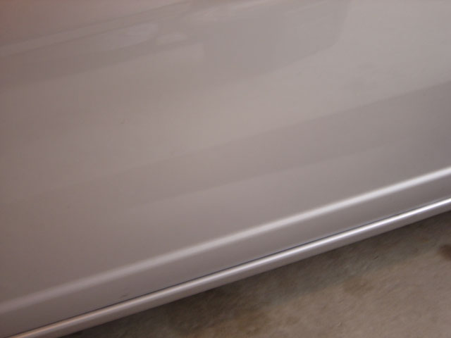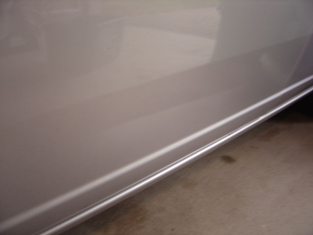 Some fool either backed diagonally into my driverside door or something like that, cuz there's this huge line dent that runs about a foot along the bottom half of the door! Argh, why can't people drive?!