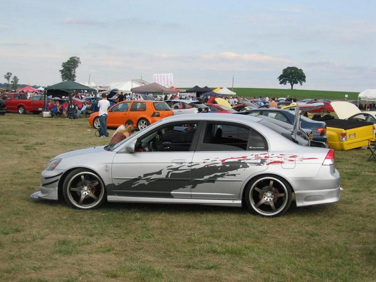 I dont remember the member names of these dudes....but one of the dudes is the guy that had the white 2 door w/ the wings west g5 kit, and the next dude had some graphics on the side....anyhow, your cars are extremely sexy in person!!! lol you drove by me right at the vendors/exhibitors entrance....