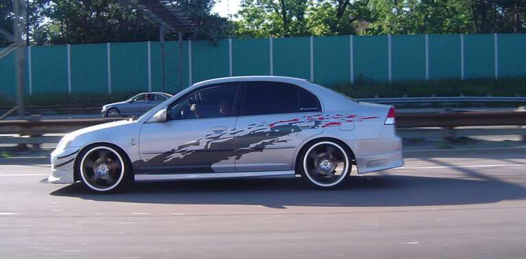 man, that was soooo hilarious...man pictures never do cars any justice....Im not a "fan", so to speak, of graphics, but your car looks damn hot! the graphics on the side make it look crazy nice...lol...