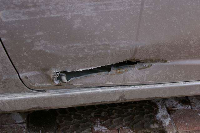 I got a door ding so hard on a rental car I had to pay $250 to repaint the door.