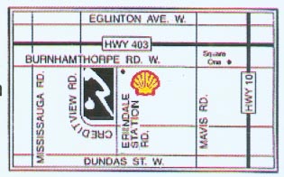 - on burnhamthorpe (coming from square one), go west, go past mavis, wolfdale, etc, then a block or so before central parkway (you know, the street where H&H grocery is) make a left when you see the SHELL gas station then turn into the mall west of the shell station (go into the first entrance)... you should now see a fitness club or something, turn right (you'll be passing by subway, so pick up a sub if you're hungry