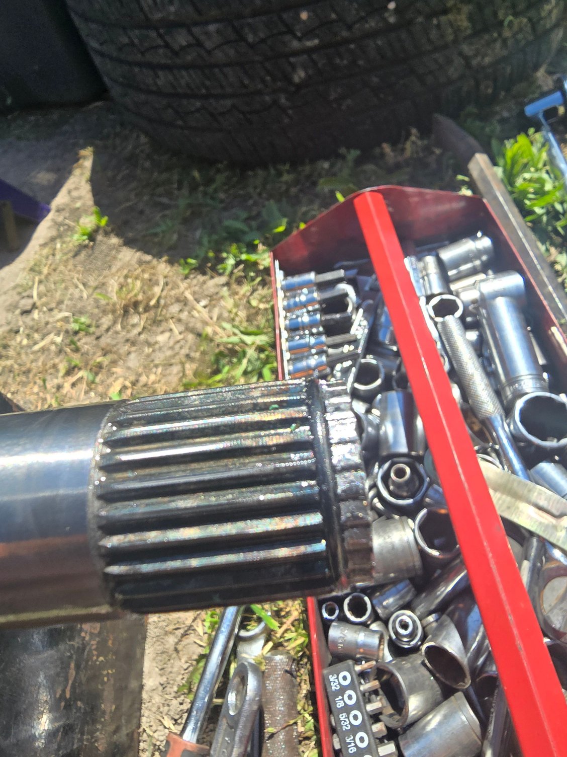 After installing new cv axles we were trying to put the car on ramps to double check a leak and we heard a grinding noise and the car would not move after. We pulled the new axle on the driver side to find the end of the splines had been rounded off. I was wondering what could have caused this and could it have also damaged the transmission.