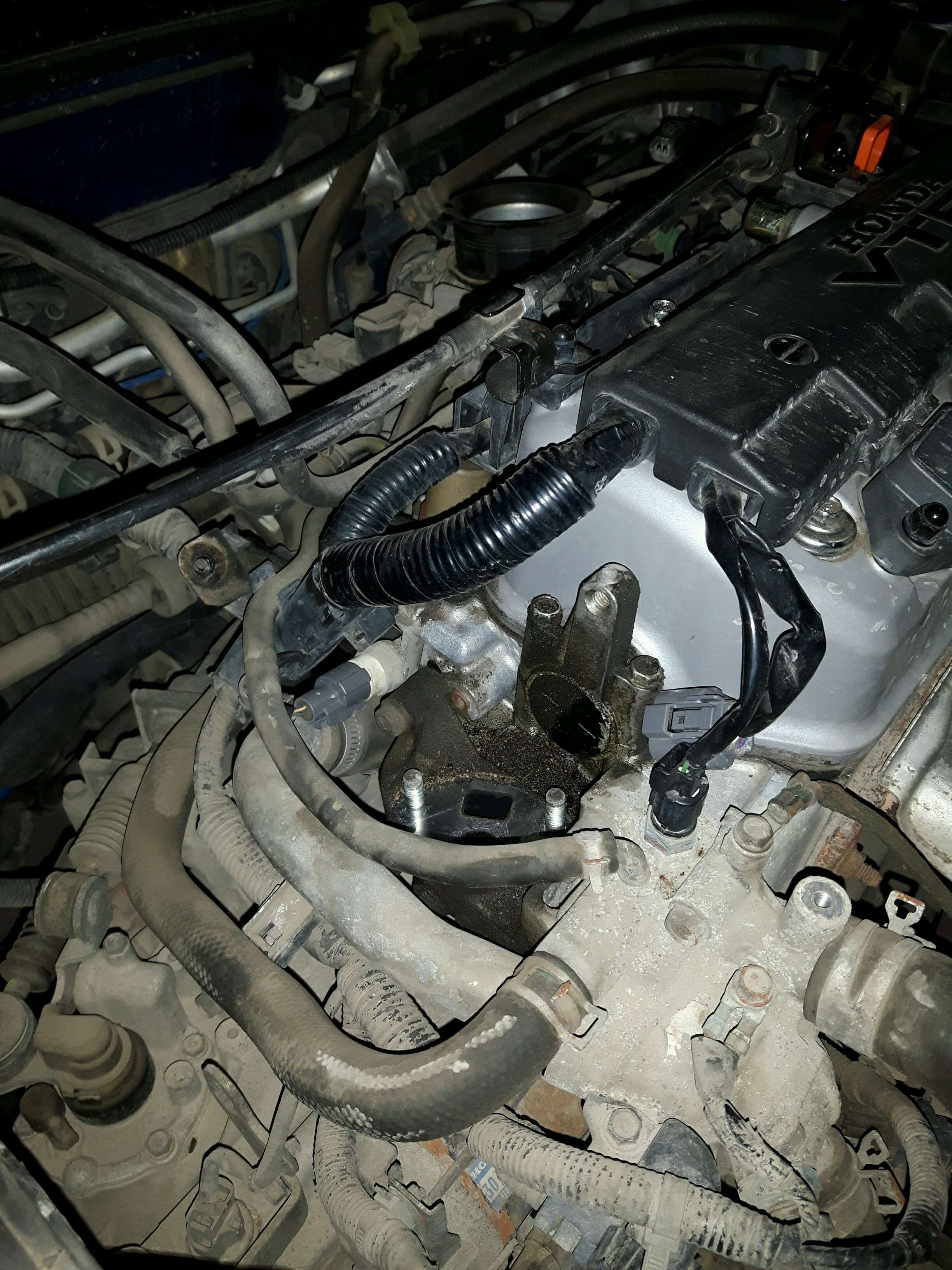 Next common leak up high is the VTEC solenoid gaskets, they are rubber and eventually harden and shrink leading to leakage, sometimes very rapid because full system oil pressure is behind the valve.