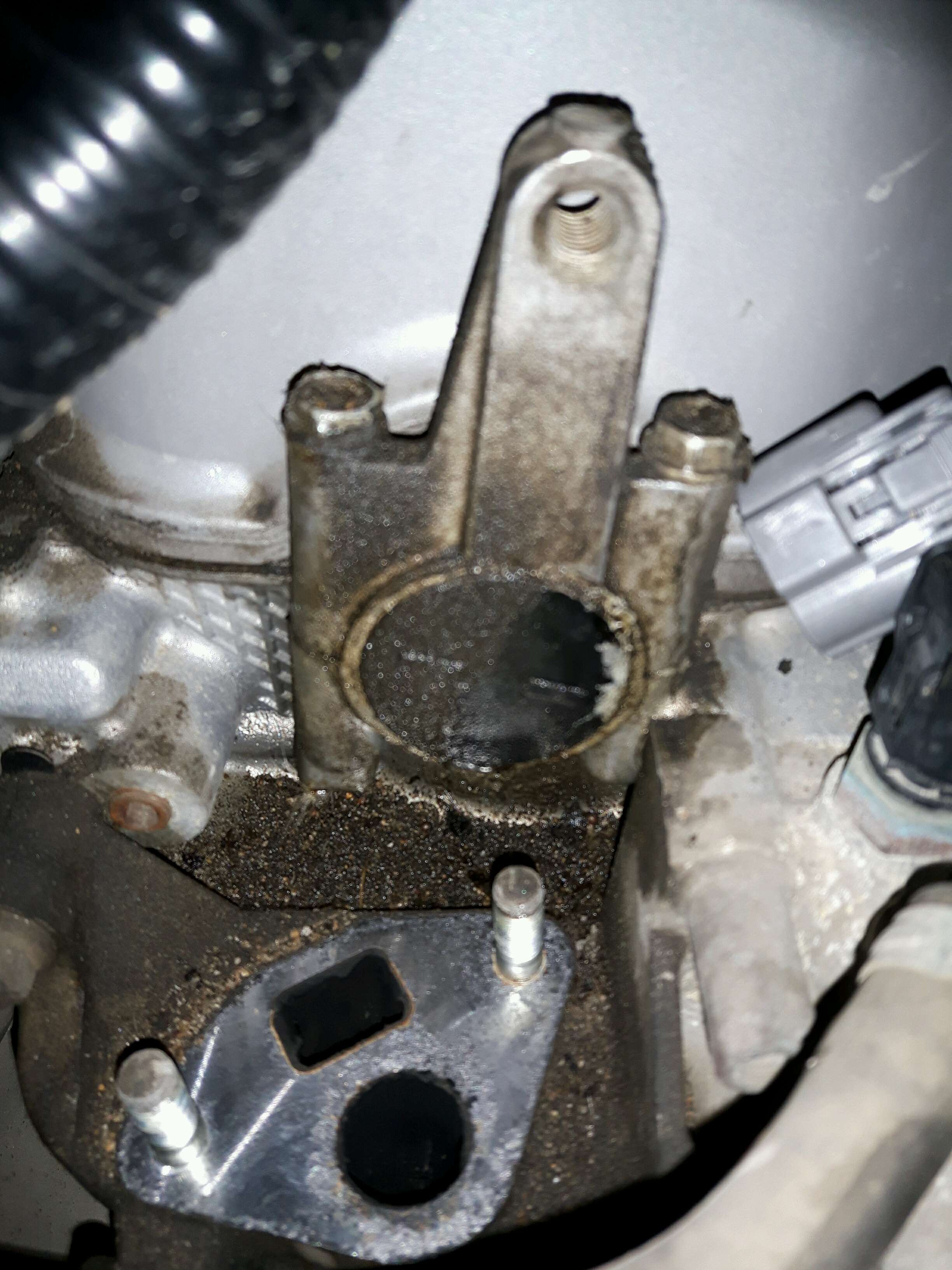 I took a few pics today as I got the car ready for winter. The engine is a bit dirty after the first snowfall right now, but there is no signs of oil anywhere. EXCEPT just under the cam seal near the EGR. My theory right now is that oil is leaking out of the seal, staying in the pocket beneath the EGR, and burning off from engine heat.