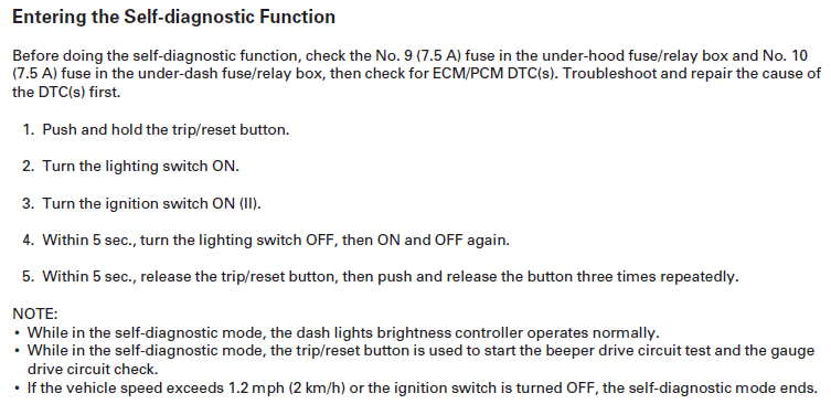 I believe there is a cluster self diagnostic test but I can't find anything in the service manual. Below are directions for the RSX which is hopefully the same. If so the gauges should sweep from minimum to maximum and then back. This would rule out the cluster having an issue.