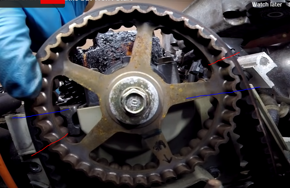 -He didn't understand the crank rotates twice to every one rotation of the cam either. The cam was not off a half rotation, just 2-3 teeth.