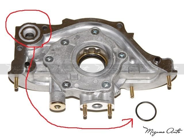 Here is where the oil seal is. This is looking at the oil pump from the engine side. The red circled above is this same area.